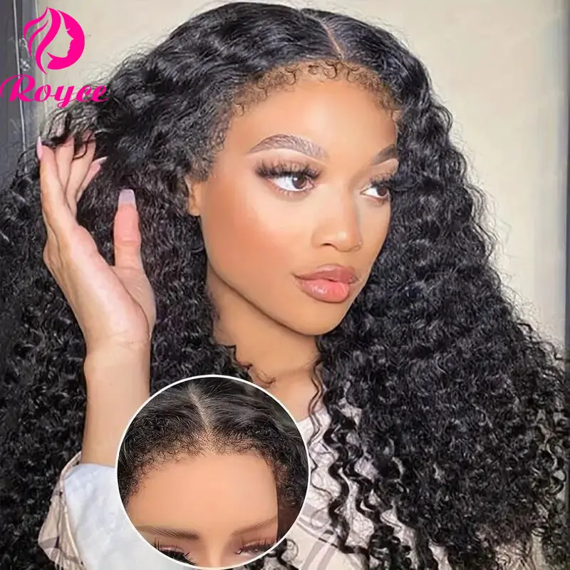 180 Density Human Hair Lace Wig Kinky Curly Edged Wigs Transparent Lace Wigs for Women Human Hair Remy Brazilian 28 30 Inch