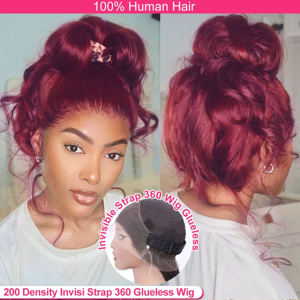 Invisi Strap 360 Full Hd Lace Frontal Wig 99j Burgundy Red Colored 30 Inch Body Wave Lace Front Wig Glueless Wig Human Hair