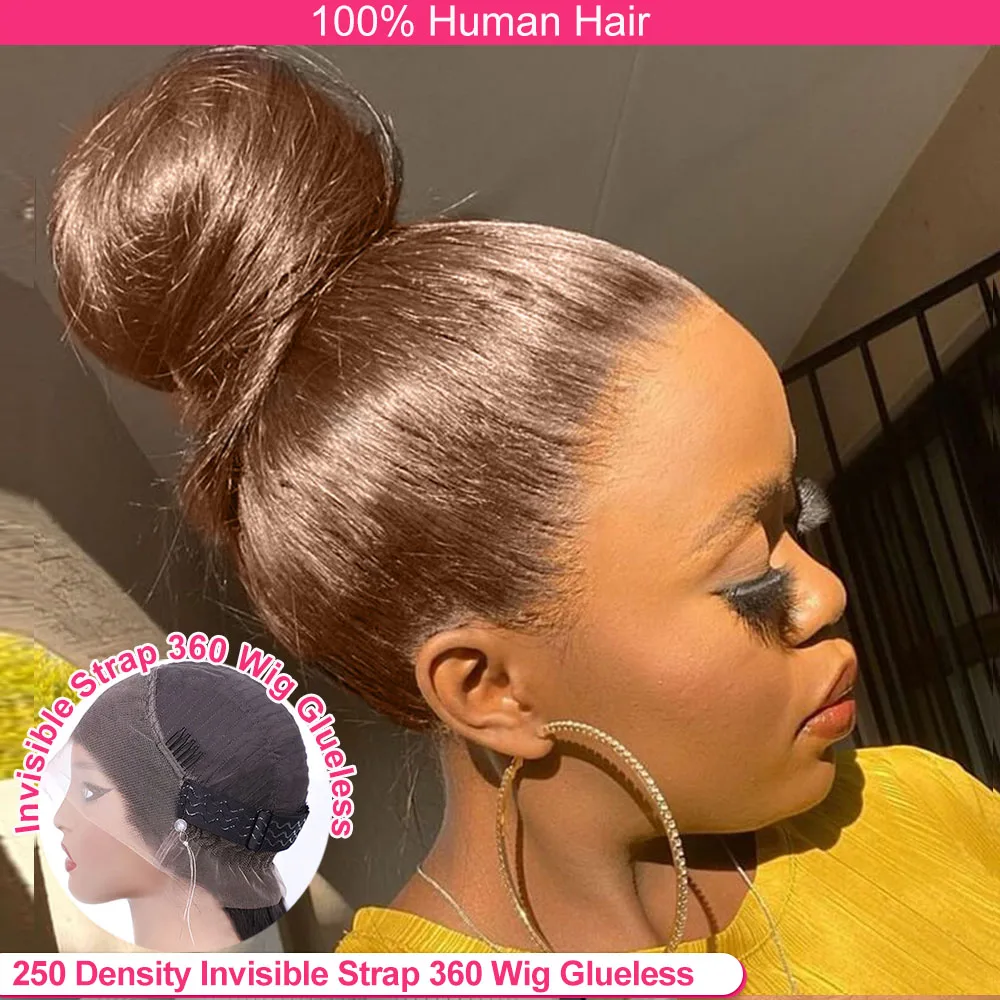 Invisi Strap 360 Full Lace Glueless Wig Chocolate Brown Colored Lace Frontal Wig 250 Density Straight Lace Front Human Hair Wig